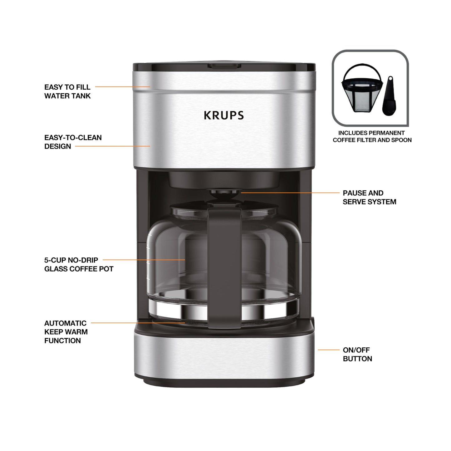 Coffee My Cup Brewmaster Collection: KRUPS Newer Model Drip Coffee Maker, 10-Cup, Silver